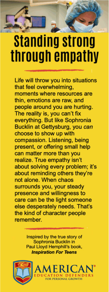 Bucklin called every wounded soldier a hero, even when others ignored or mistreated them. Compassion means treating people with dignity, no matter their condition.